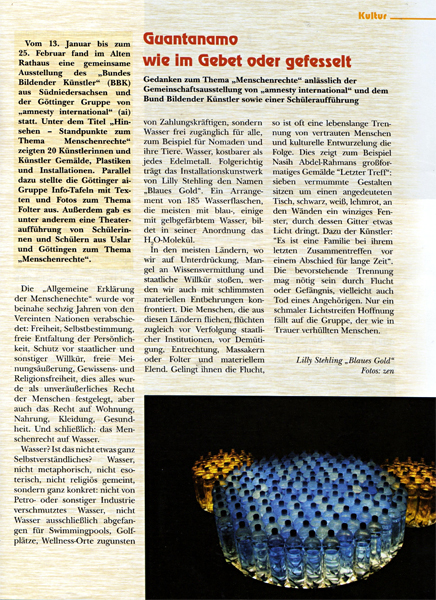 ai/BBK Ausstellungsprojekt "Hinsehen- Standpunkte zum Thema Menschenrechte" Altes Rathaus Göttingen [ Text 1 ] [ Text 2 ] |