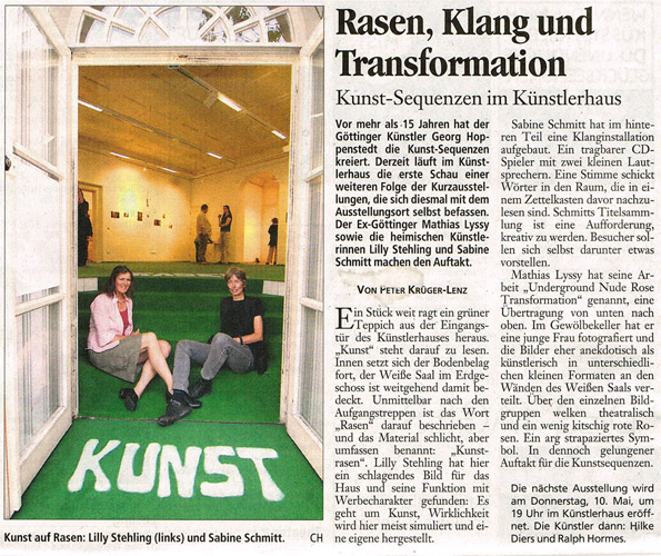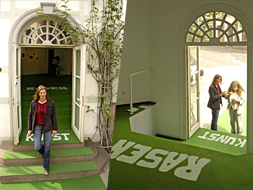 "Kunstrasen" (2007) Installation mit Kunstrasen und Acrylfarbe