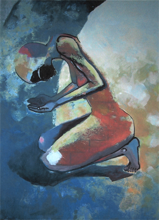 Figur im Höhleneingang (2000) Dispersion / Holz 100 x 135 cm
